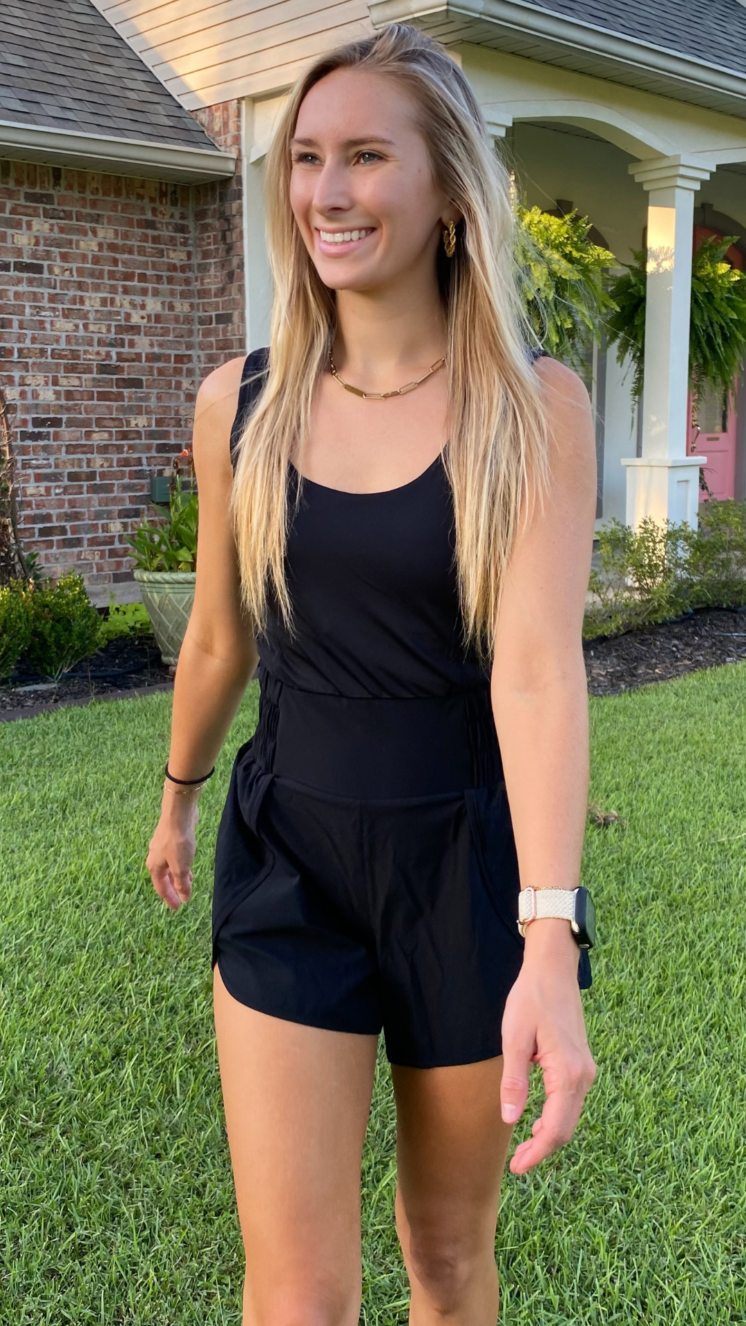 Stay comfortable during your runs with our running shortsie. Its one-piece construction ensures a secure fit, while the stretch woven short with dolphin style hem provides freedom of movement. The tank features princess seams, a built-in bra with removable pads, and a cutout strap detail on the back.