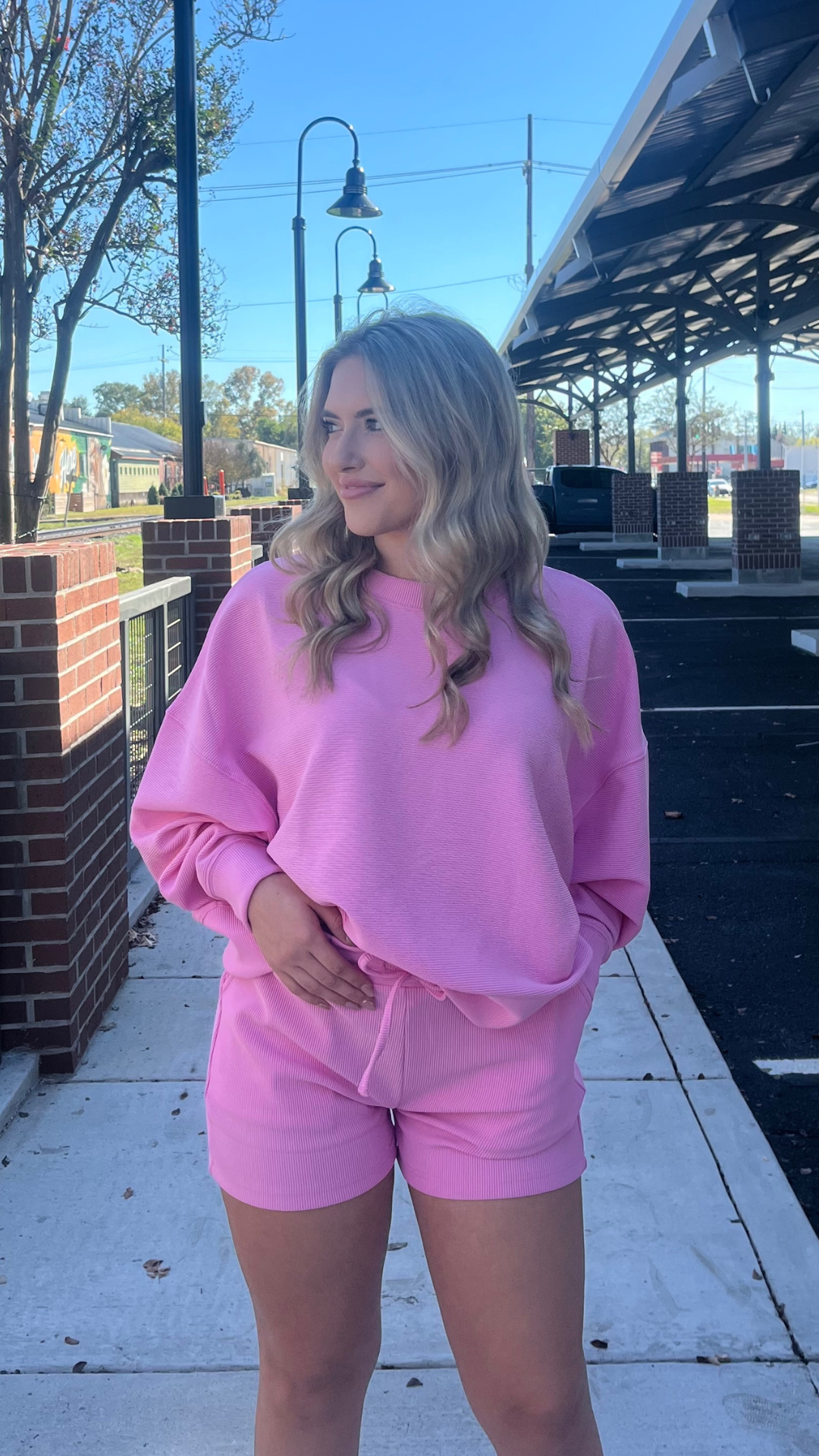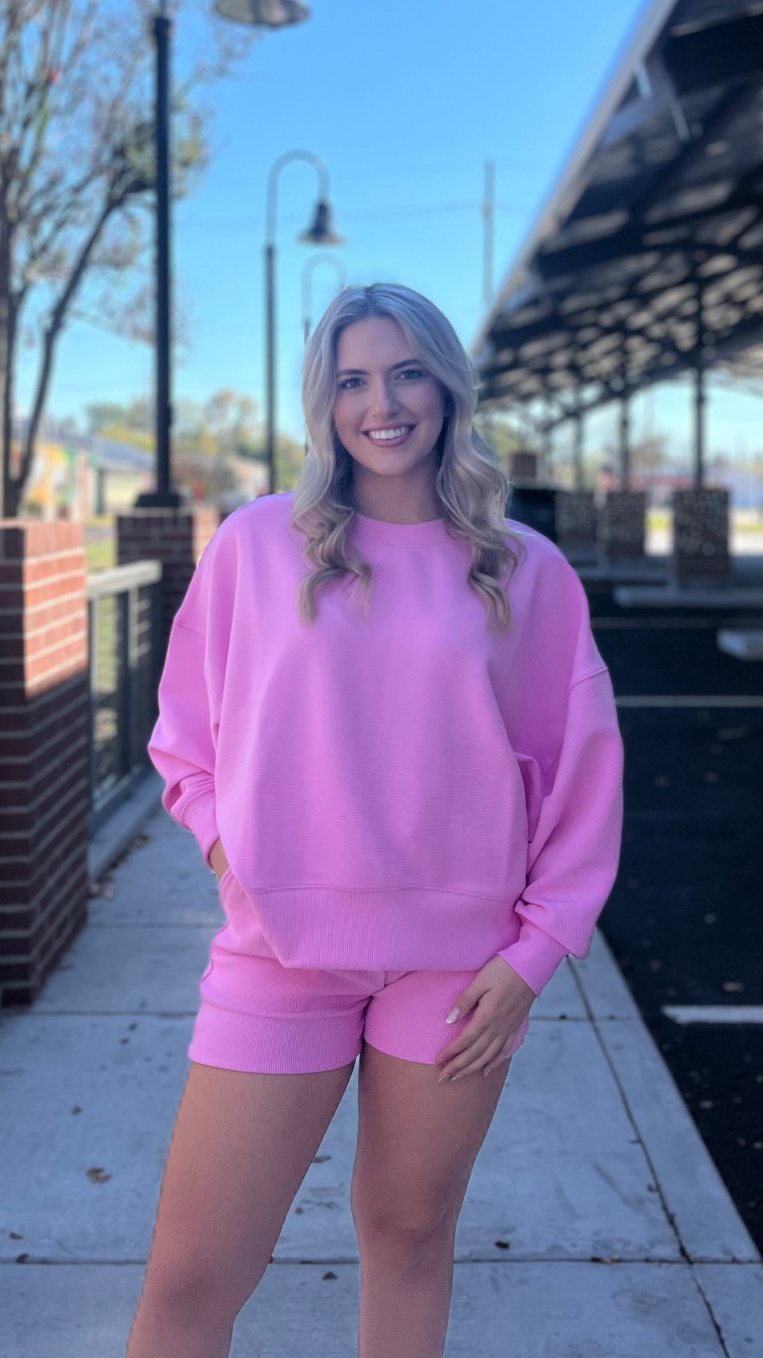 This ribbed lounge set is made from a soft, flexible blend of 95% polyester and 5% spandex, giving it a smooth, lightweight feel with just the right amount of stretch. The pullover features a relaxed fit with subtle ribbed texture, while the matching shorts keep things easy and effortless for warm days or indoor lounging.